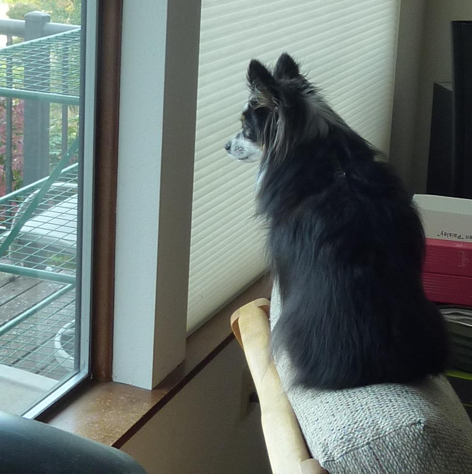 Another view, she has no problem sitting on this narrow chair top