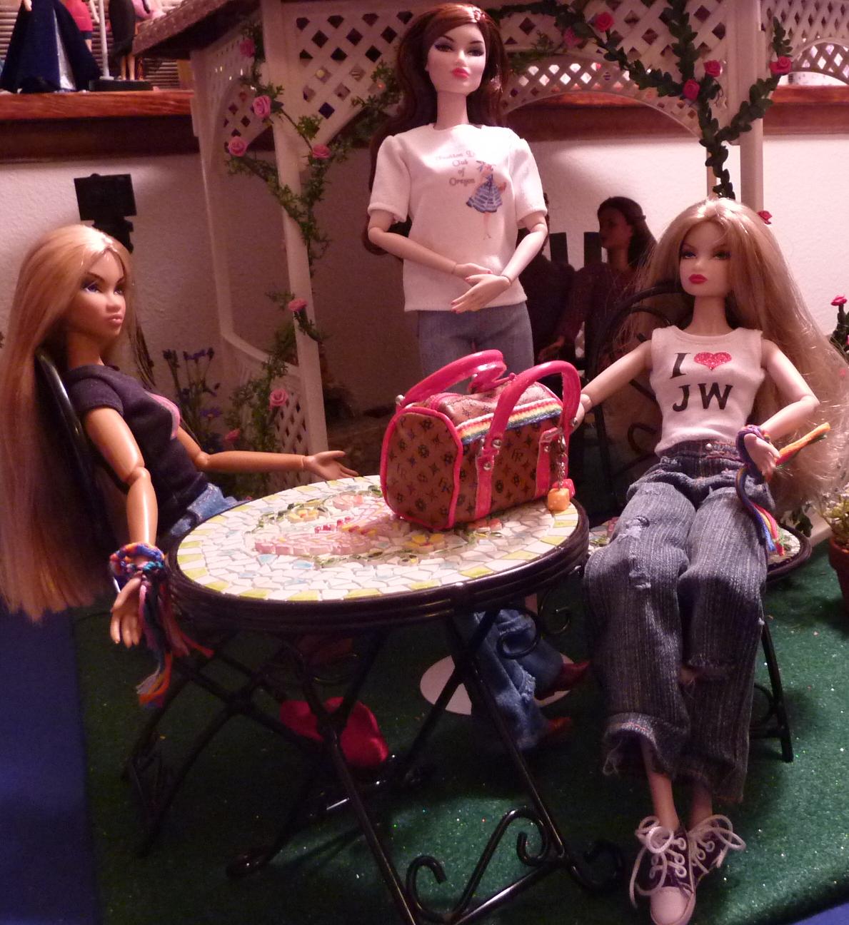 Painted Black Colette in convention t-shirt ,City Girl Imogen in doll club logo t-shirt & Pretty Calculated Erin in Casual Affair Misaki fashion