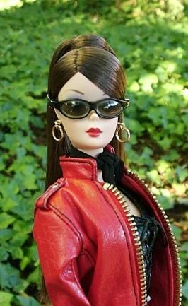 brunette FM in red leather Ferrari outfit, close-up (266x433)