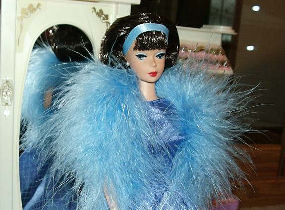 Carrie's sidepart AG,chest up blue boa + mirror