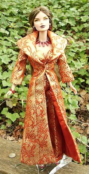 EF Vero in Spice Girls orange brocade, jewelry by goodsurfing