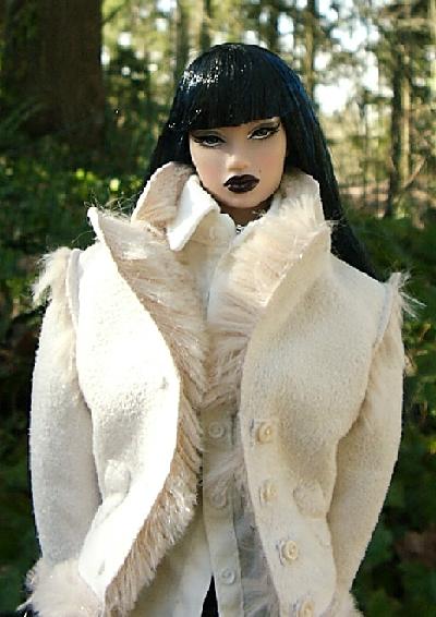 Dark Narcissus in Homme jacket, close-up