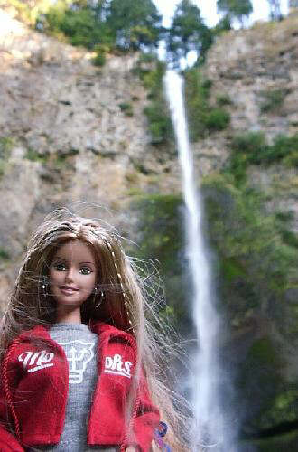 Looking up at Multnomah Falls from path above bridge (330x500)