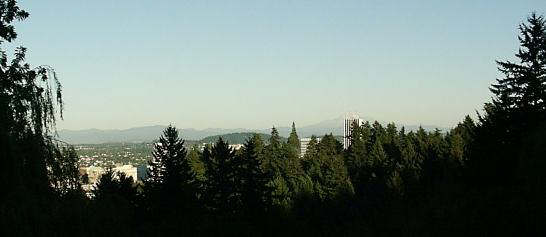 View from the Rose Garden, Portland's skyline + Mt Hood (546x237)