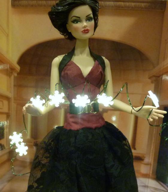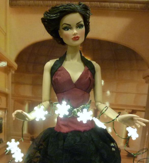 OOAK A Woman Who Thinks by Kevin showing off Home Depot snowflake lights