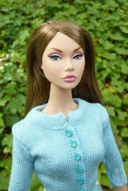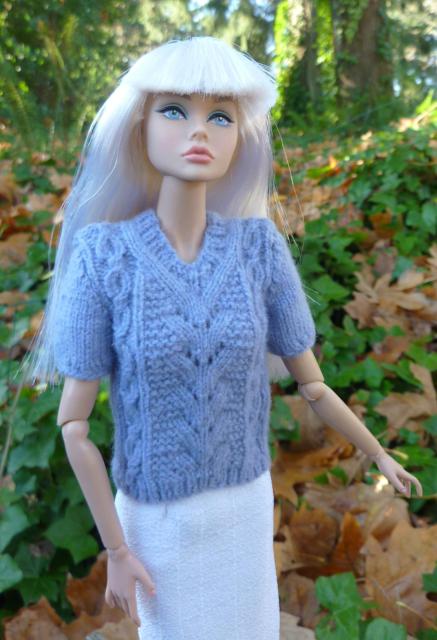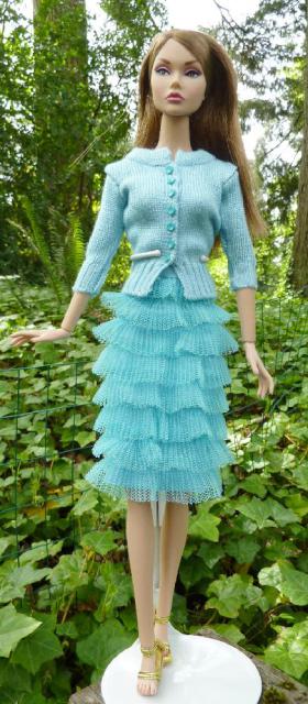 Ask Any Girl Poppy in sweater/skirt knitted by Ann