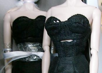 The tops of both dolls appear to me to be identical. Same pattern, fabric, sequins.