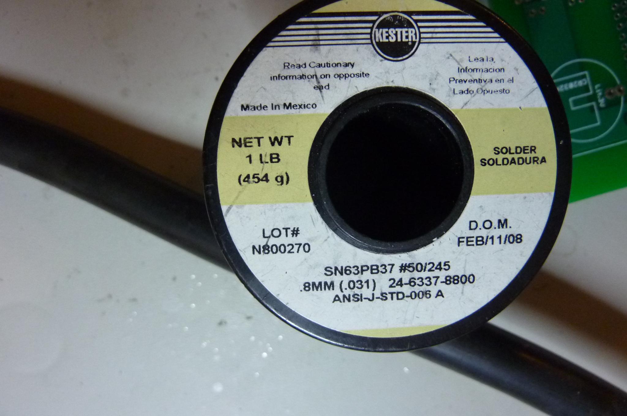 I use eutectic (63/37) no-clean rosin core solder in the 0.031 inch (0.8mm) thickness, and a fairly hot iron (325 degrees), for an easier soldering experience. The boards come in a tin-lead finish, so soldering this is about as easy as soldering gets. |