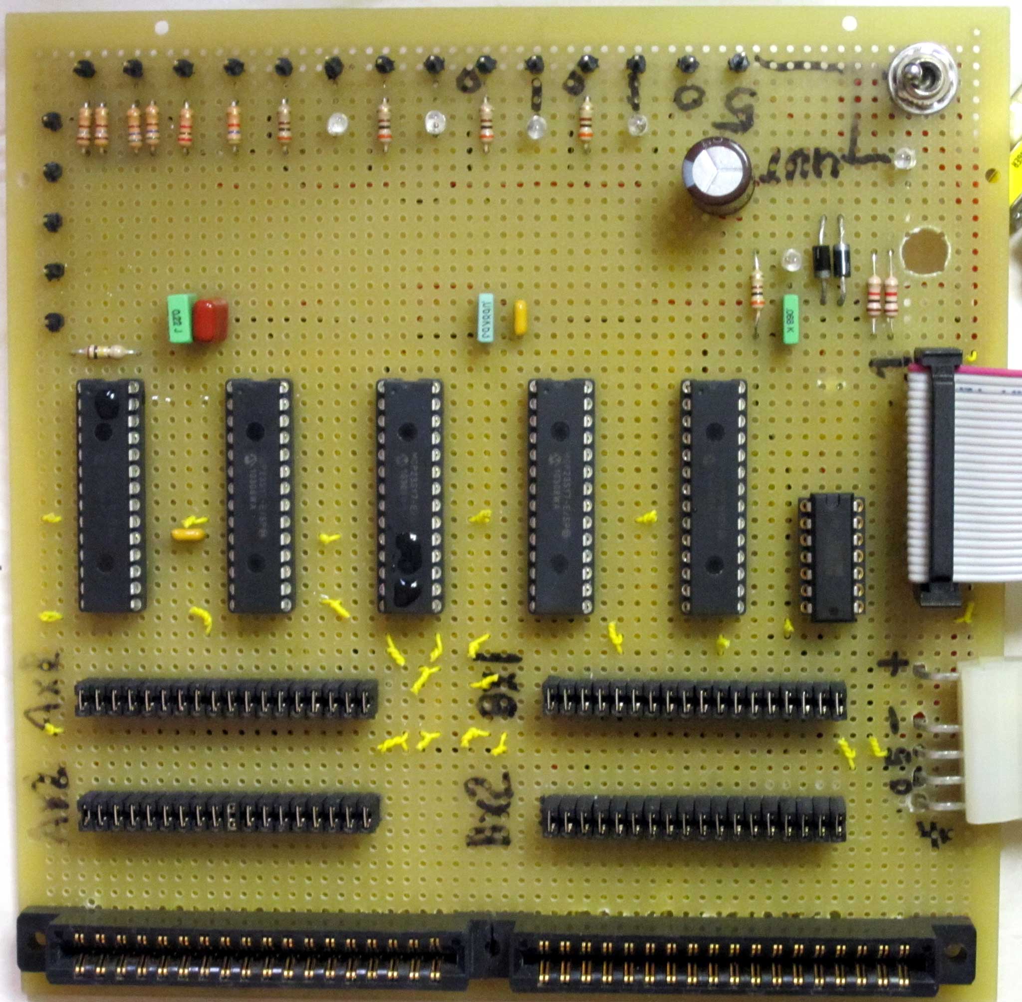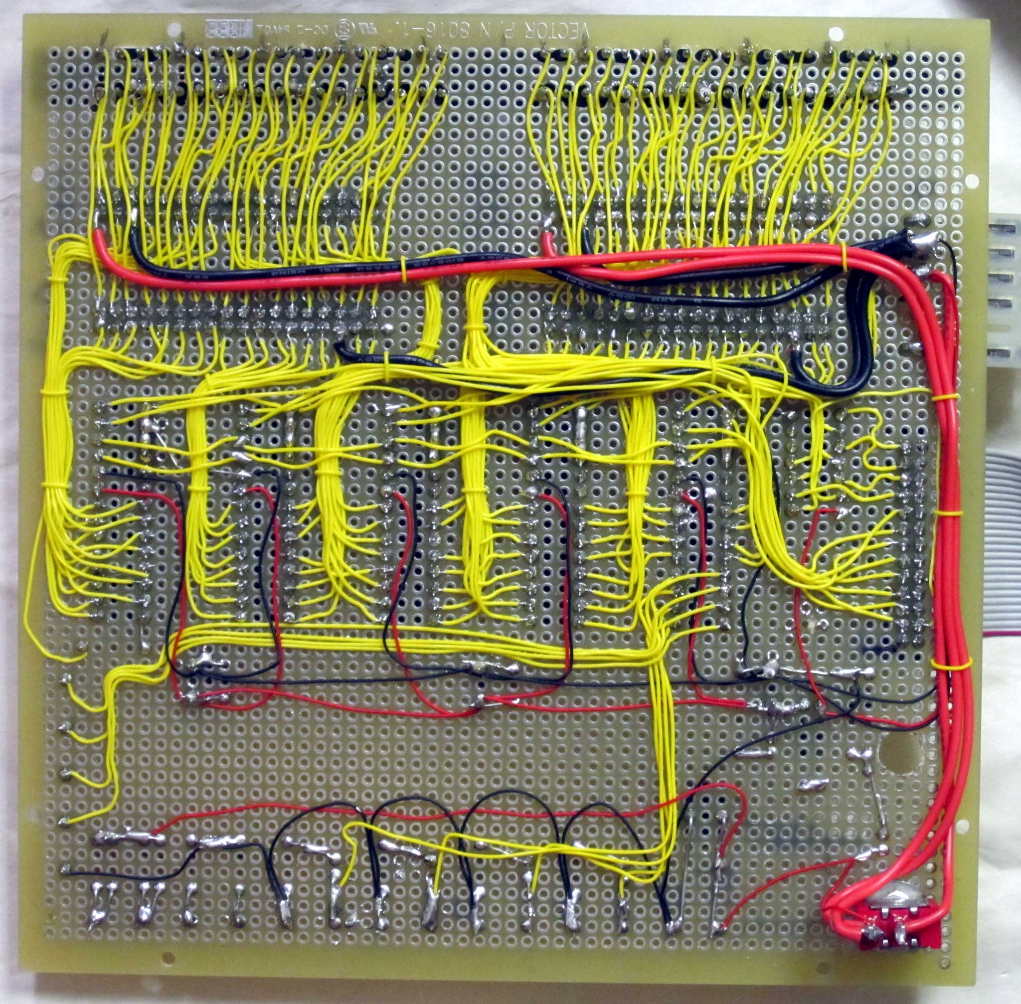 Warren had added headers for various supply voltages to his prototype over the years, and my drawings differ in the orientation of some components, a couple of blue wires, but this effort has been largely successful. Working testers have been created!