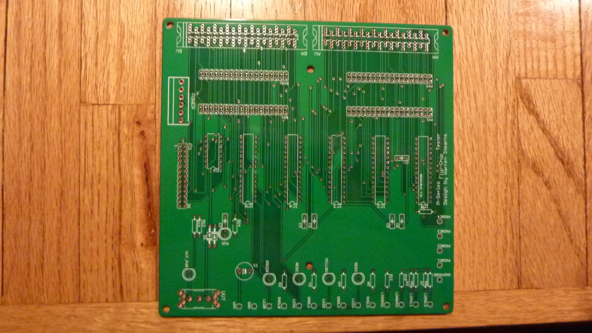 The connector "PC1" is swapped from the original on the board. The simplest work-around to make this compatible with standard ribbon cables is to install the connector header on the solder side. You should have received both right-angle and straight-pin versions of the 26 pin header to install for PC1. I prefer the right-angle version, which conveniently makes the cable come out from under the left side of the tester.